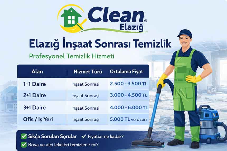 Elazığ İnşaat Sonrası Temizlik Fiyatları